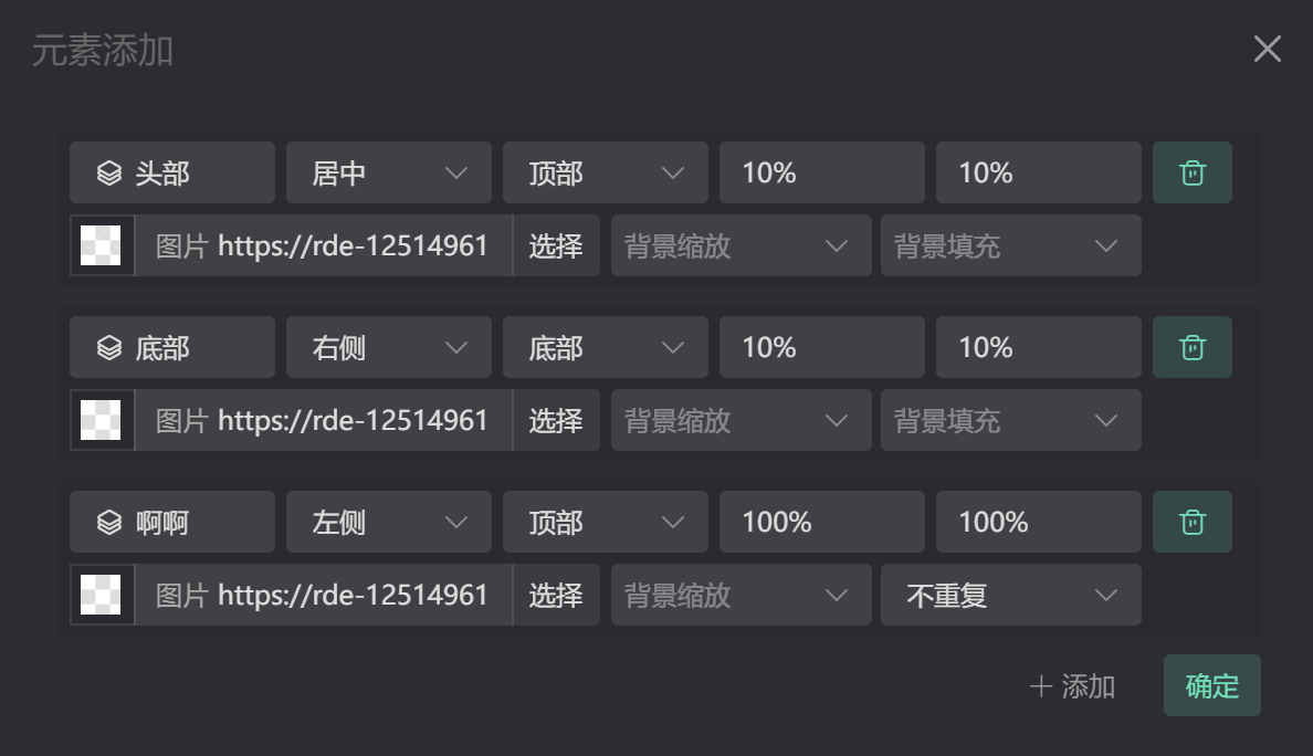 设置的每一项都一个和背景图相关的内容,具体属性有: