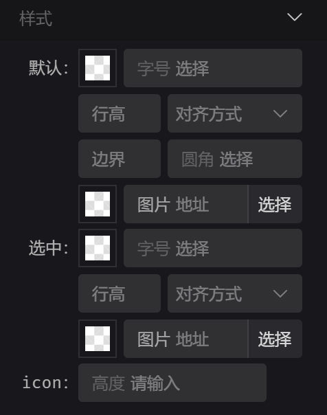 - 默认状态:颜色、字号、对齐方式、边界、圆角、背景色、背景图
