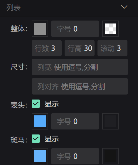 - 尺寸:这里的尺寸是定义每一列的宽度,使用都好分割