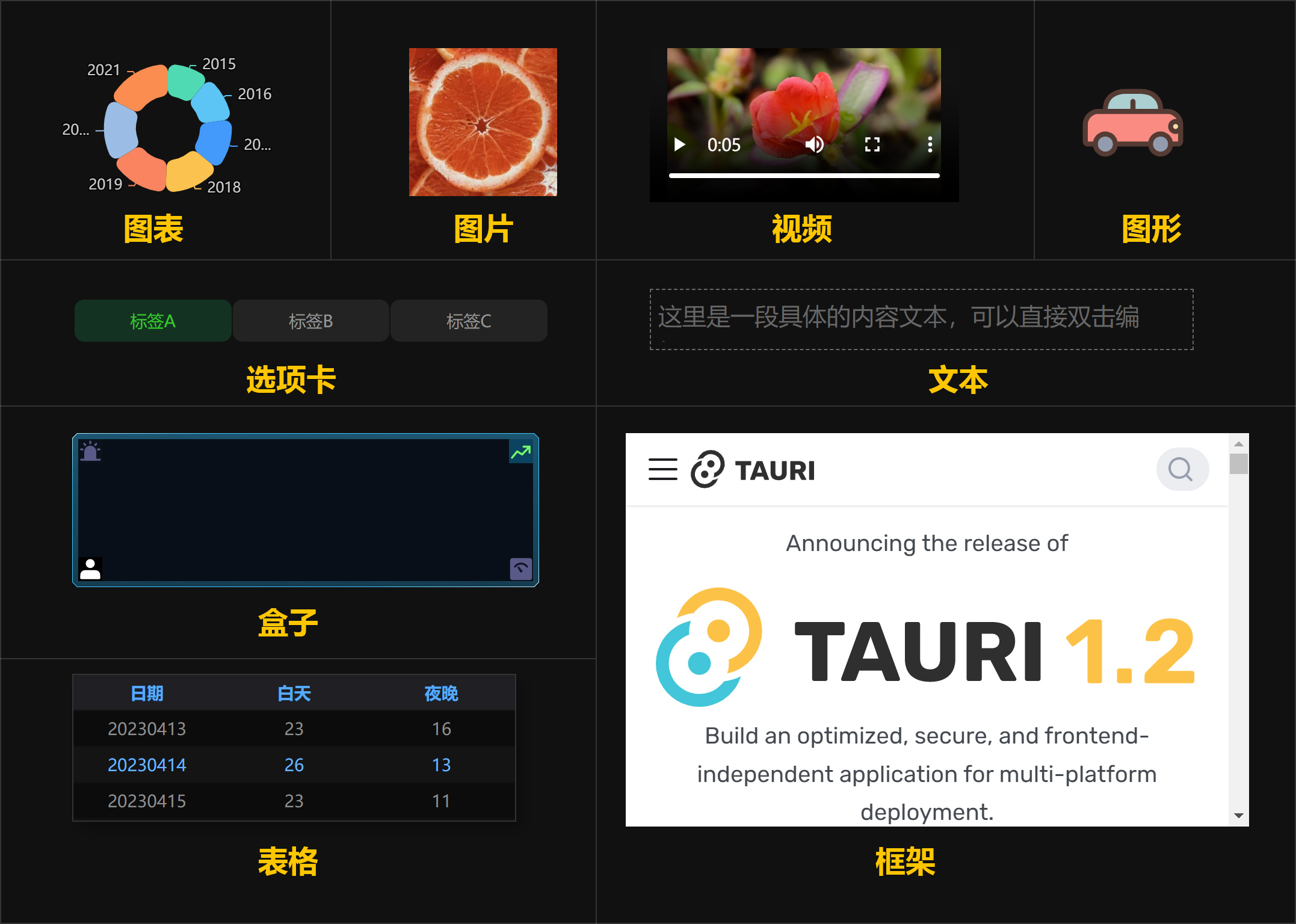 图形组件主要用于显示svg格式的图形内容,非此格式字符串将不会显示